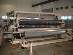 ....鑄膜片進入縱拉機和橫拉機被拉伸成為薄膜,經(jīng)過雙向拉伸后薄膜需經(jīng)過牽引機展平,同時進行薄膜測厚、切邊、電暈處理,然后送入收卷。薄膜在收卷機通過展平輥、接觸輥、張力輥的控制卷繞在收卷輥芯上,完成了薄膜半成品加工的過程,圖5為牽引、收卷機: