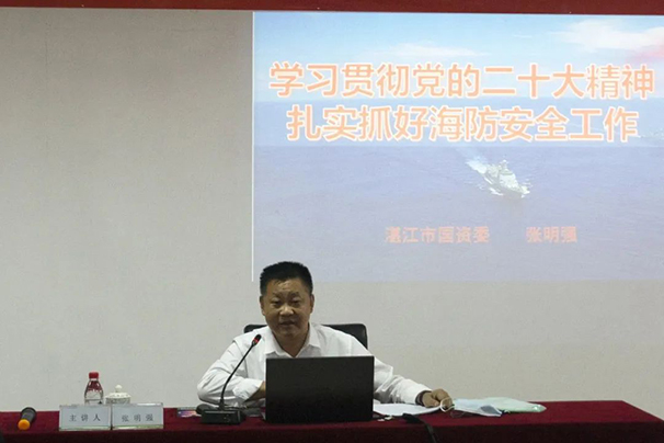 國家安全是國家發(fā)展的最重要基石、人民福祉的最根本保障,為認真學(xué)習(xí)貫徹黨的二十大精神,增強全民國家安全意識,11月18日,我司邀請湛江市國資委副主任、二級調(diào)研員、市國防教育講師團成員張明強來我司做題為“學(xué)習(xí)貫徹黨的二十大精神,扎實抓好海防安全工作”的專題宣講。公司黨委委員、紀(jì)委書記、監(jiān)察專員肖軍主持會議。