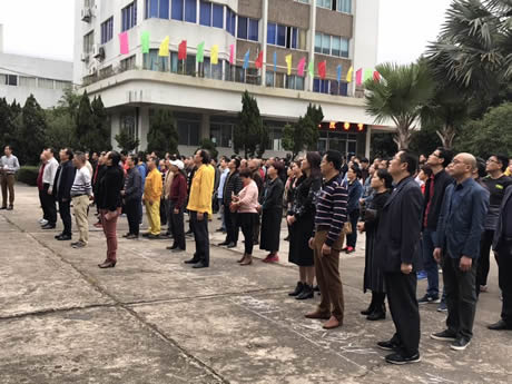 南國的早春,綠意盎然,生機勃勃。在這萬象更新,蓄勢待發(fā)的春日里,員工們滿臉春風,精神抖擻。8點零8分,升旗儀式正式開始,在莊嚴的國歌聲中,國旗與廠旗在旗手們步調(diào)一致中冉冉升起。在行注目禮的瞬間,自豪感油然而生,心中默念祝愿祖國繁榮富強,企業(yè)興旺發(fā)達。俗話說:一年之計在于春,好的開頭是成功的一半。當然少不了領導的加油鼓勁,升旗禮畢,公司代董事長李云峰同志為我們發(fā)表開年賀詞加油鼓勁,勉勵我們齊心合力,團結互助,揚長避短,精益求精,共創(chuàng)美好明天。