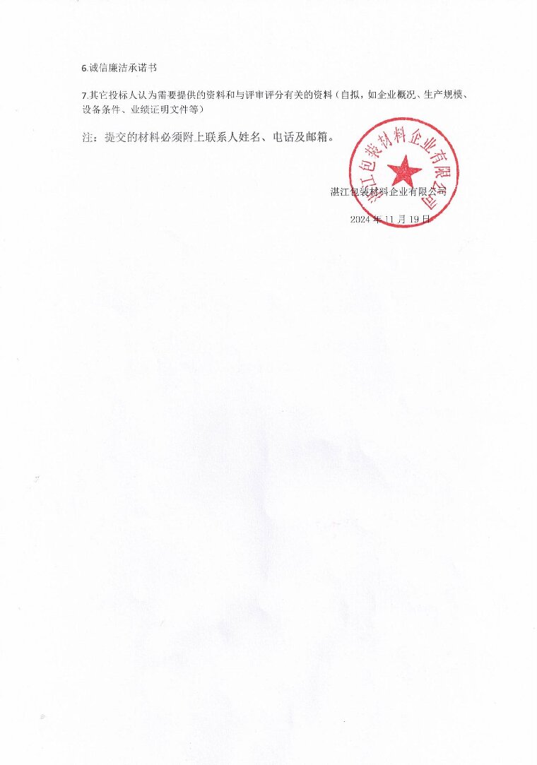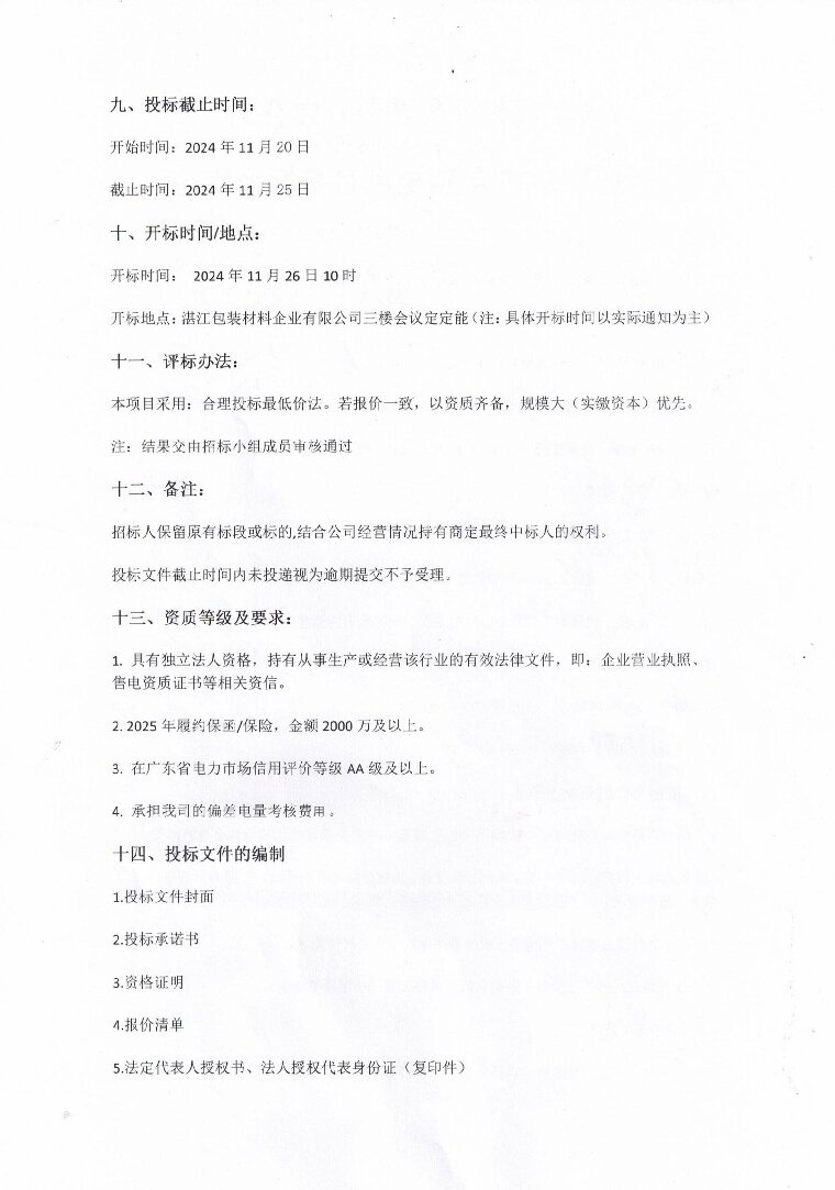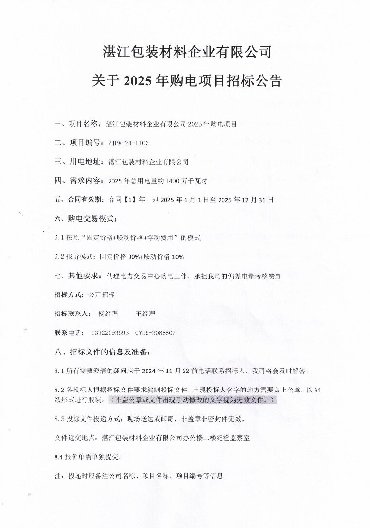 湛江包裝材料企業(yè)有限公司關(guān)于2025年購(gòu)電項(xiàng)目招標(biāo)公告