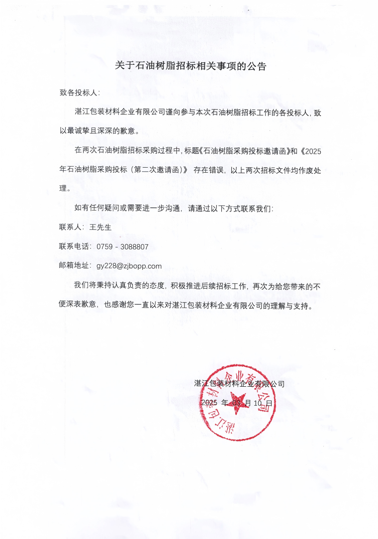 • 下一篇:湛江包裝材料企業(yè)有限公司應聘人員擬錄用公示 2025/2/25
