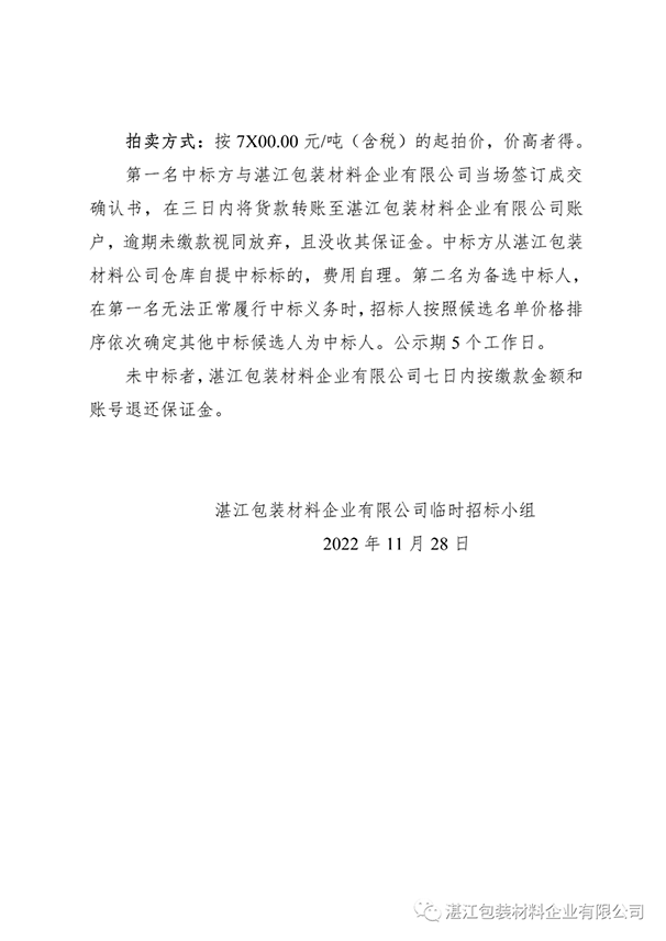 關(guān)于拍賣處理雙向拉伸聚丙烯回