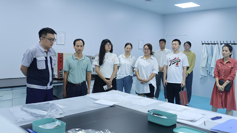 簽約儀式后,泉莊街道黨工委書記陳龍盛、人民社區(qū)黨委書記潘青一行6人依次參觀了我司生產(chǎn)車間、實(shí)驗(yàn)室、勞模工作室、產(chǎn)品展示大廳,并聽取了詳細(xì)的講解。