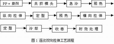 ....總體上,逐次拉伸法是將擠出的PP片材先經(jīng)過縱向拉伸、后橫向拉伸來完成二次取向過程。生產(chǎn)過程中主要控制的工藝參數(shù)有生產(chǎn)線速度、溫度、拉伸比等。