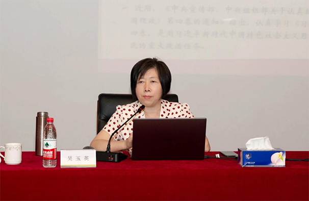 吳玉英教授詳細(xì)介紹了《習(xí)近平談治國(guó)理政》第四卷的總體框架與學(xué)習(xí)方法,從牢牢抓住“掌握歷史主動(dòng)”這個(gè)題眼入手,以“黨的全面領(lǐng)導(dǎo)”為主線,把學(xué)習(xí)宣傳黨的二十大精神同學(xué)習(xí)貫徹《習(xí)近平談治國(guó)理政》第四卷結(jié)合起來。