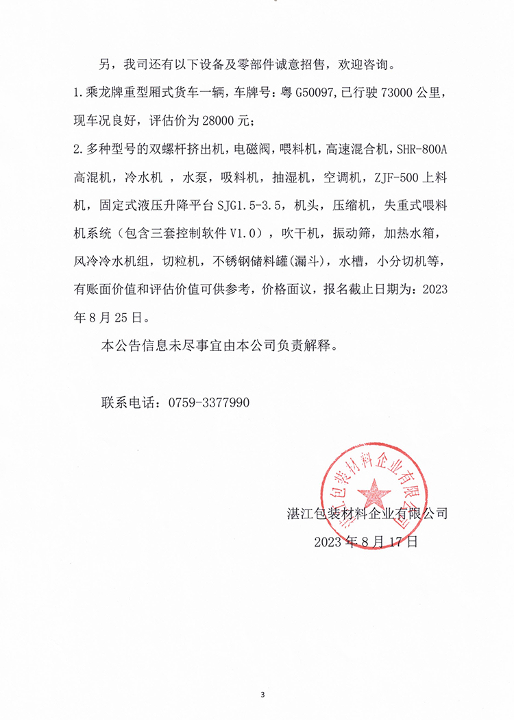 湛江包裝材料企業(yè)有限公司關(guān)于
